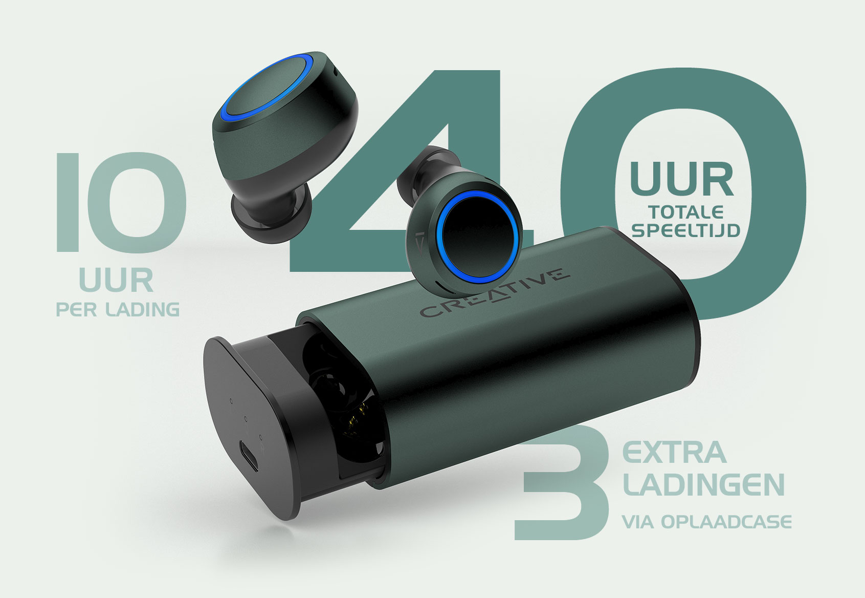 Wees niet te stoppen met de Creative Outlier Air V3. De oordopjes gaan tot 10 uur mee op een enkele lading en tot 40 uur samen met de oplaadcase. De vraag is, kunt u het bijhouden?